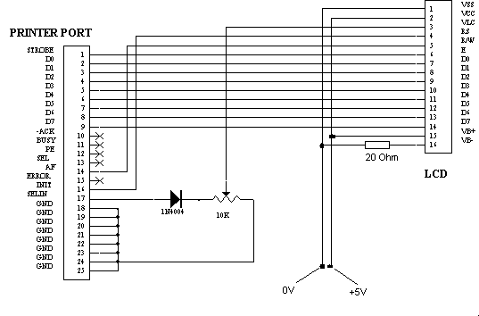 ohjaustuki 2x20 LCD-näytölle LPT-portin kautta. Mahdollista